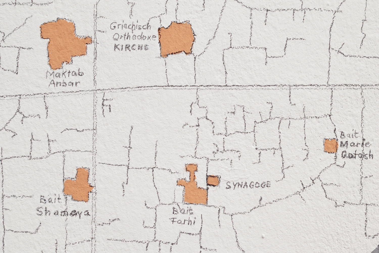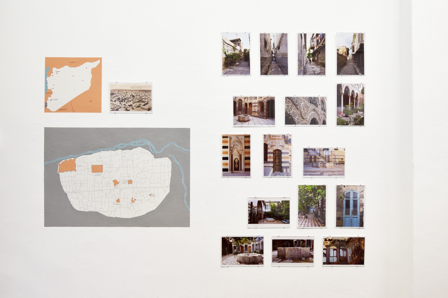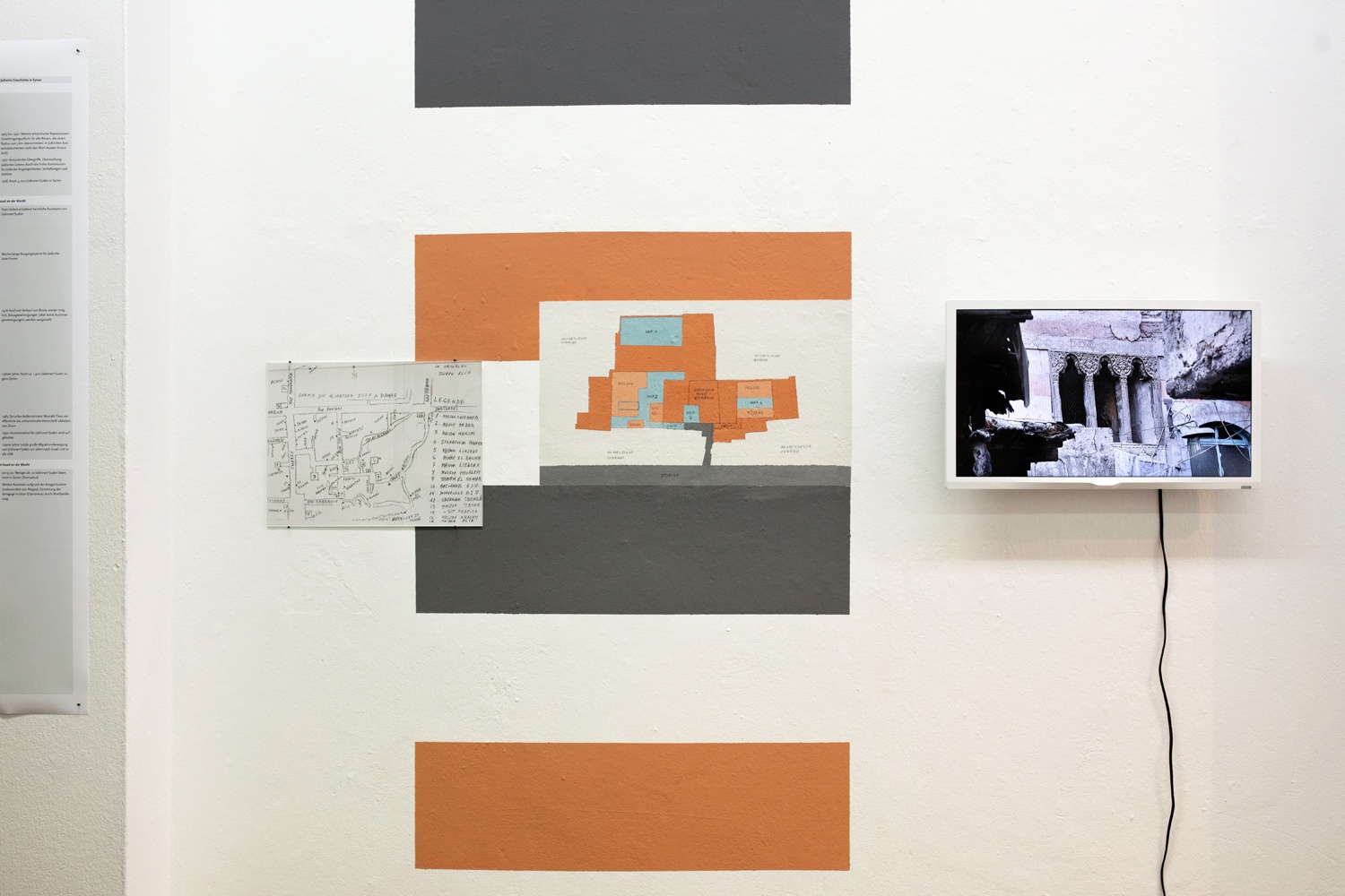 Die jüdische Gemeinschaft in Syrien war einst die größte im arabischsprachigen Raum. Dementsprechend reichhaltig sind die architektonischen Einflüsse und religiöse Symbolik, die sich im jüdischen Viertel von Damaskus wiederfinden lassen. Ergänzt mit Geschichten der Bewohner*innen und Hintergrundinformationen erzählt die Ausstellung vom Zusammenleben von muslimischer Mehrheit und jüdischer Minderheit. Sie thematisiert zudem die multiplen – häufig fluiden – Identitäten, die sich zwischen Arabisch, Jüdisch und Syrisch bewegen und begegnet dem vermeintlichen Widerspruch, der sich zwischen dem Jüdischen und dem Arabischen auftut. Das ebenfalls in der Ausstellung gezeigte Videointerview mit dem US-Amerikanischen Journalisten Maurice Chammah zu der syrisch-jüdischen Herkunft seines Vaters greift diese Themen in Form einer persönlichen Reflexion auf und vertieft sie.