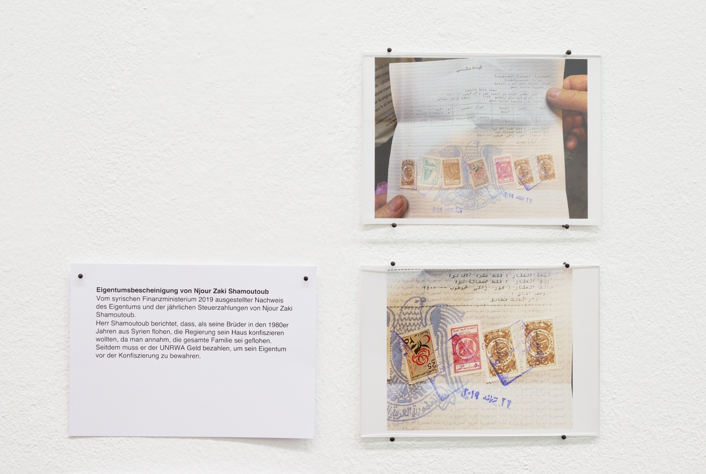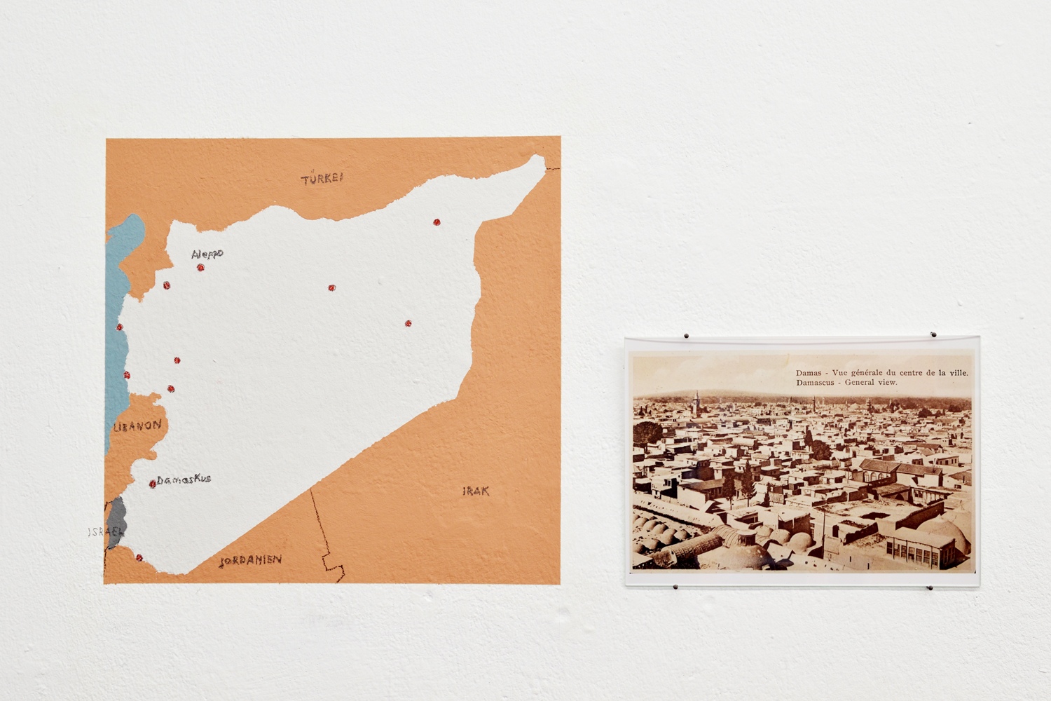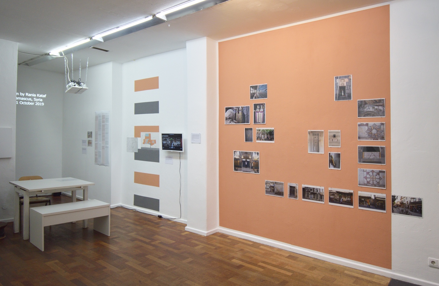 Die jüdische Gemeinschaft in Syrien war einst die größte im arabischsprachigen Raum. Dementsprechend reichhaltig sind die architektonischen Einflüsse und religiöse Symbolik, die sich im jüdischen Viertel von Damaskus wiederfinden lassen. Ergänzt mit Geschichten der Bewohner*innen und Hintergrundinformationen erzählt die Ausstellung vom Zusammenleben von muslimischer Mehrheit und jüdischer Minderheit. Sie thematisiert zudem die multiplen – häufig fluiden – Identitäten, die sich zwischen Arabisch, Jüdisch und Syrisch bewegen und begegnet dem vermeintlichen Widerspruch, der sich zwischen dem Jüdischen und dem Arabischen auftut. Das ebenfalls in der Ausstellung gezeigte Videointerview mit dem US-Amerikanischen Journalisten Maurice Chammah zu der syrisch-jüdischen Herkunft seines Vaters greift diese Themen in Form einer persönlichen Reflexion auf und vertieft sie.
